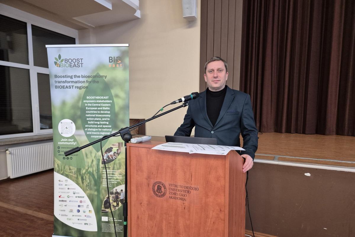 ŽŪM Strateginio planavimo departamento direktorė Virginija Žoštautienė apžvelgė Lietuvos institucijų vykdomas bioekonomikos srities veiklas. Ji atkreipė dėmesį į tai, kad bioekonomikos plėtra Lietuvoje apima platų tarpdisciplininių priemonių spektrą, o koordinuotas strateginis požiūris šioje srityje yra nuosekliai formuojamas. Šio departamento vyriausioji patarėja Goda Vainienė pristatė naująją Europos Sąjungos bioekonomikos strategiją, akcentuodama jos svarbą stiprinant tvarią bioekonomikos plėtrą, inovacijų diegimą ir didesnės pridėtinės vertės kūrimą.